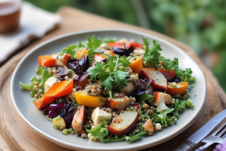 Deliciosa Ensalada de Quinoa con Verduras Asadas y Aderezo de Tahini